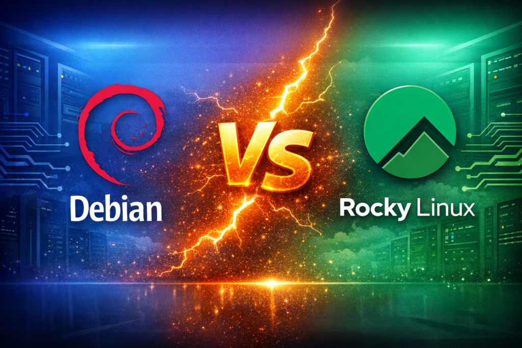 Debian и Rocky Linux са стабилни Linux дистрибуции, използвани за сървъри, VPS инфраструктура и корпоративни системи. И двете предлагат висока надеждност и сигурност, но следват различни подходи при обновленията и управлението на софтуера. Debian е известен със своята дългогодишна стабилност и широка употреба, докато Rocky Linux е създаден като заместител на CentOS и е насочен към enterprise среди с RHEL съвместимост.